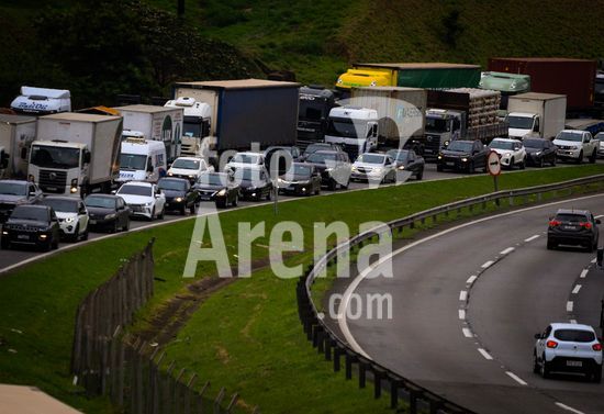 2820922 Trânsito intenso no Rodoanel Mario Covas, trecho oeste, altura do Km 20, sentido Régis Bittencourt, nesta sexta-feira (10) que antecede o feriado de Nossa Senhora Aparecida.Segundo inforações da Concessionária CCR, o congestionamento se deu por conta de 2 acidentes ao londo da rodovia.