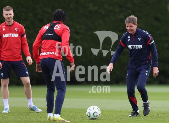 LONDRES, INGLATERRA, 15 DE ABRIL: Oliver Glasner, treinador do Crystal Palace, durante o treino da equipe no MD-1, antes da partida da Liga Conferencia da UEFA entre ACF Fiorentina e Crystal Palace FC, no Centro de Treinamento do Crystal Palace, em Londres, Inglaterra, em 15 de abril. (Daniel Weir/SPP)