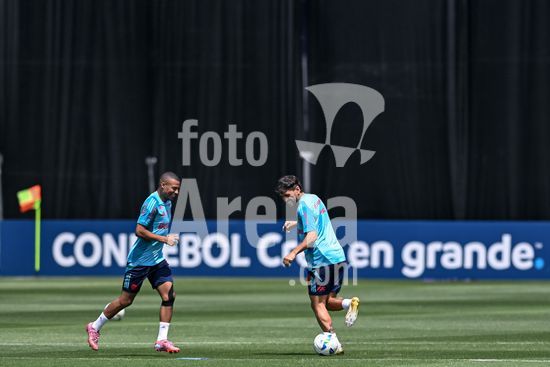 2849778 De La Cruz e Arrascaeta durante treino do Flamengo, na preparação para a Final da CONMEBOL Libertadores 2025, realizado no complexo VIDENA, localizado na cidade de Lima, Peru, na manhã desta sexta-feira (28).