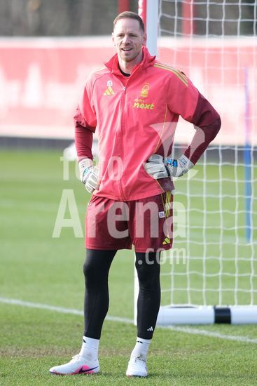 2874998 Matz Sels, do Nottingham Forest, treinando durante o dia de imprensa do Nottingham Forest e do Ferencvarosi TC. (Paul Bonser/Sports Press Photo / SPP)