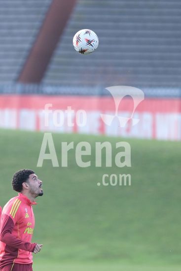 2875045 Lorenzo Lucca, novo reforco do Nottingham Forest, treina durante o dia de imprensa do Nottingham Forest e do Ferencvaros TC. (Paul Bonser/Sports Press Photo / SPP)