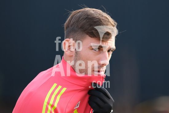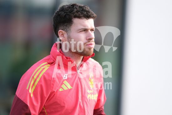 2875044 Ryan Yates, do Nottingham Forest, treinando durante o dia de imprensa do Nottingham Forest e do Ferencvarosi TC. (Paul Bonser/Sports Press Photo / SPP)