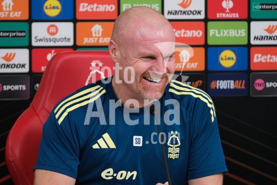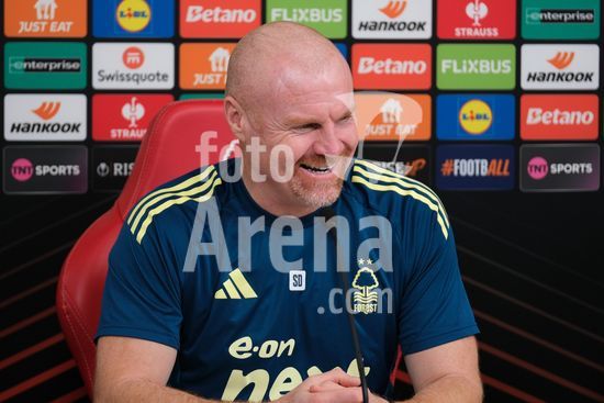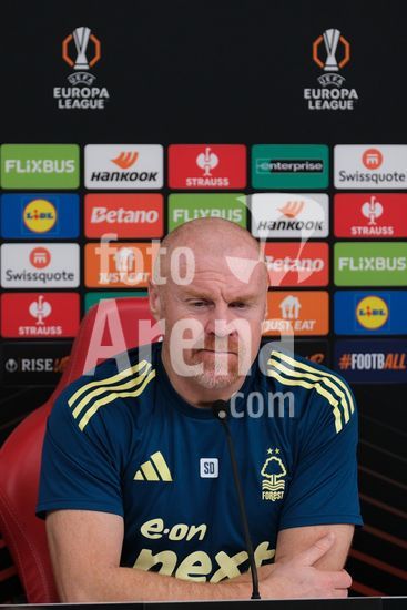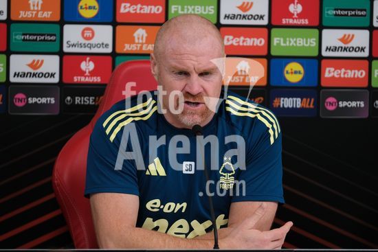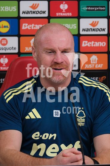 2875118 O treinador do Nottingham Forest, Sean Dyche, durante a conferencia de imprensa, no dia de comunicacao com os mediadores do Nottingham Forest e do Ferencvaros TC. (Paul Bonser/Sports Press Photo / SPP)