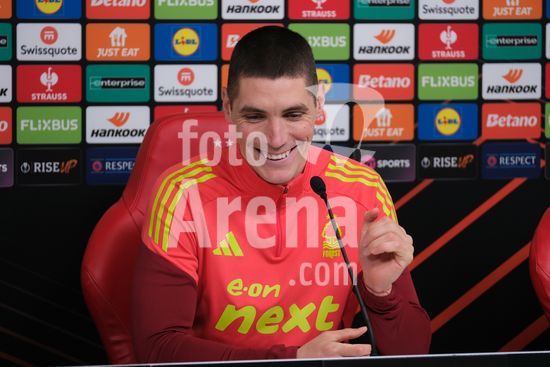2875125 Nikola Milenkovic, do Nottingham Forest, durante a conferencia de imprensa, no dia de comunicacao com os media do Nottingham Forest e do Ferencvaros TC. (Paul Bonser/Sports Press Photo / SPP)