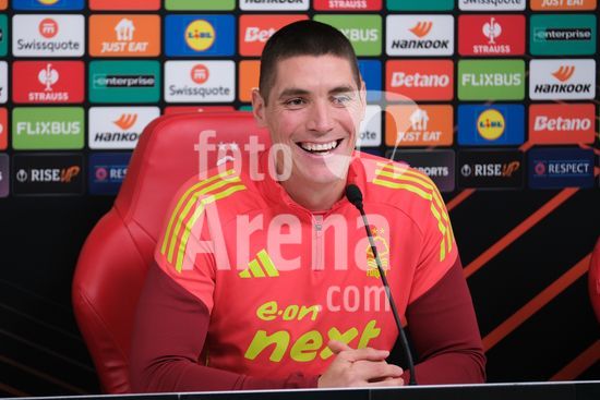 2875122 Nikola Milenkovic, do Nottingham Forest, durante a conferencia de imprensa, no dia de comunicacao com os media do Nottingham Forest e do Ferencvaros TC. (Paul Bonser/Sports Press Photo / SPP)