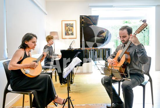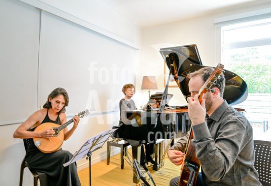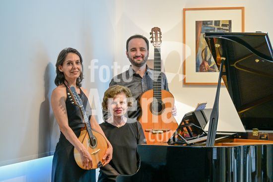 2879830 Trio Maciar faz ensaio para apresentação no Sesc o Trio Maciar é composto pela musicista Raquel Aranha bandolim , Rosana Civile no piano e Bruno Madeira no violão .