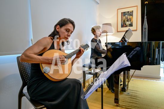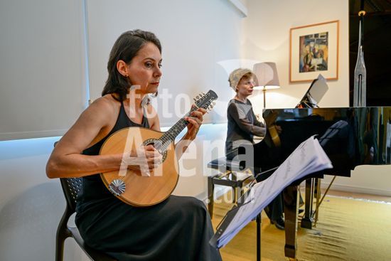2879826 Trio Maciar faz ensaio para apresentação no Sesc o Trio Maciar é composto pela musicista Raquel Aranha bandolim , Rosana Civile no piano e Bruno Madeira no violão .