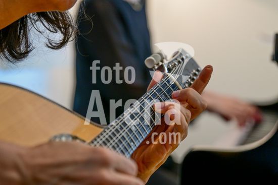 2879778 Trio Maciar faz ensaio para apresentação no Sesc o Trio Maciar é composto pela musicista Raquel Aranha bandolim , Rosana Civile no piano e Bruno Madeira no violão .