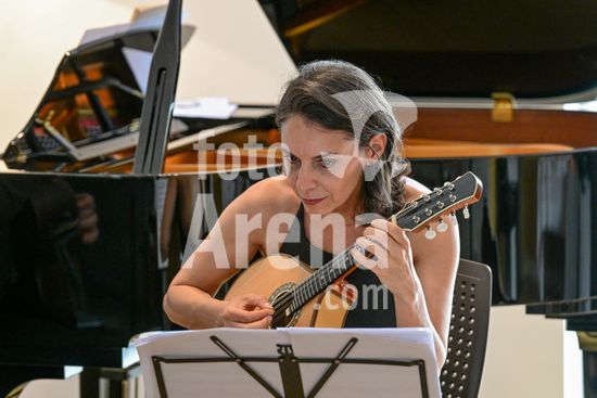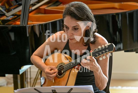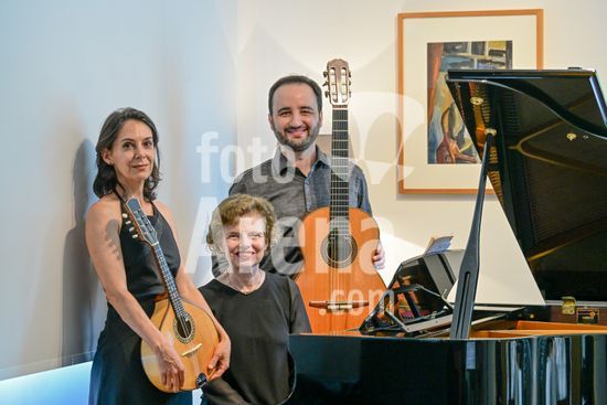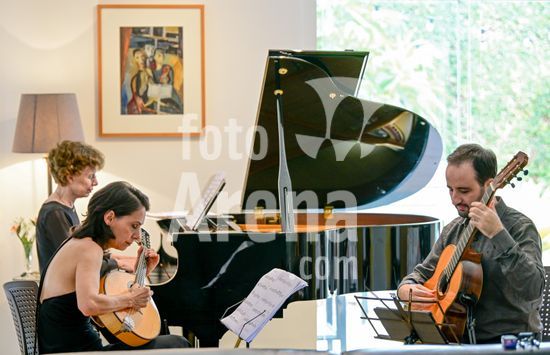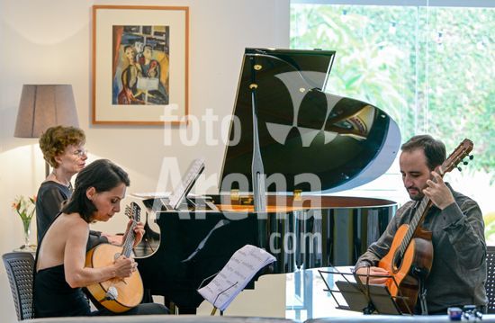 2879836 Trio Maciar faz ensaio para apresentação no Sesc o Trio Maciar é composto pela musicista Raquel Aranha bandolim , Rosana Civile no piano e Bruno Madeira no violão .