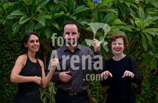 2879817 Trio Maciar faz ensaio para apresentação no Sesc o Trio Maciar é composto pela musicista Raquel Aranha bandolim , Rosana Civile no piano e Bruno Madeira no violão .