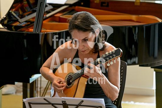 2879786 Trio Maciar faz ensaio para apresentação no Sesc o Trio Maciar é composto pela musicista Raquel Aranha bandolim , Rosana Civile no piano e Bruno Madeira no violão .