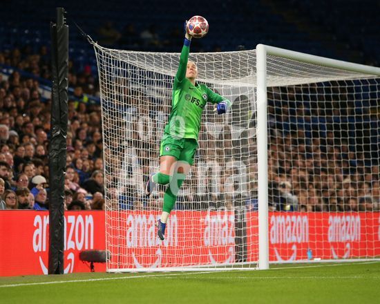 2916721 LONDRES, INGLATERRA - 1 DE ABRIL: A goleira Hannah Hampton, do Chelsea, salta para defender a bola durante a partida de volta das quartas de final da Liga dos Campeoes Feminina da UEFA 2025/26 entre Chelsea e Arsenal, no Stamford Bridge, em 1 de abril de 2026, em Londres, Inglaterra. (Jay Patel/SPP)