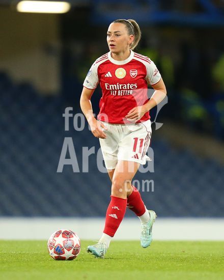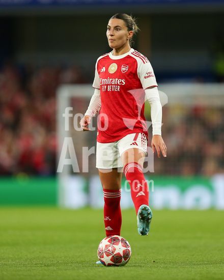 2916725 LONDRES, INGLATERRA - 1 DE ABRIL: Katie McCabe, do Arsenal, com a bola durante a partida de volta das quartas de final da Liga dos Campeoes Feminina da UEFA 2025/26 entre Chelsea e Arsenal, no Stamford Bridge, em 1 de abril de 2026, em Londres, Inglaterra. (Jay Patel/SPP)
