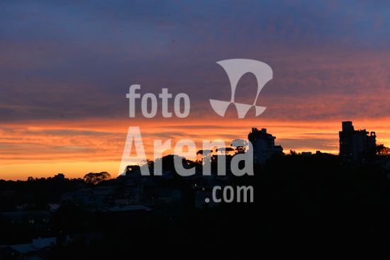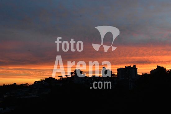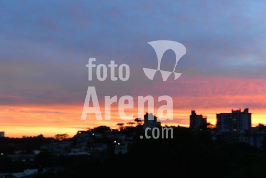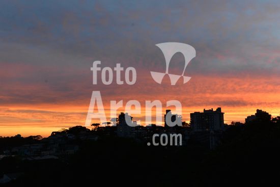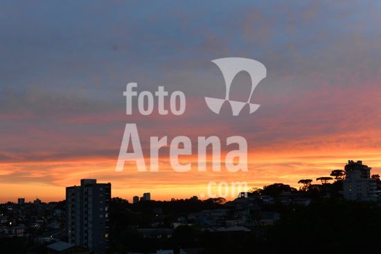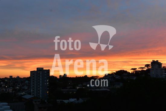2825487 Imagem de clima tempo, com céu claro no início da noite, com pôr do sol alaranjado. Tempo seco, pouco vento. A cor mais alaranjada do que o comum ocorre porque a frequência vermelha, emitida pelo Sol, tem menor interação com as partículas de poluição, como poeira e fumaça. Caxias do Sul, RS, (16).