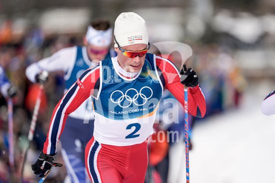 ny210226121611 Harald Oestberg Amundsen (2), of Norway, during the 50km mass start cross-country skiing men's competition at the 2026 Milan Cortina Winter Olympics in Lago, Italy, Saturday, Feb. 21, 2026. (Vincent Alban/The New York Times/Fotoarena)