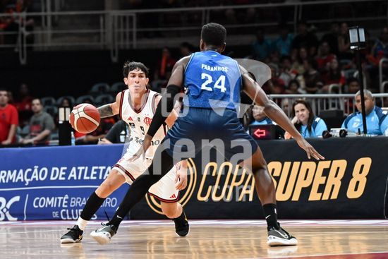 2874893 Flamengo x Minas pela Copa Super 8 de basquete, no Ginásio do Maracanãzinho, na noite desta terça-feira (27), no Rio de Janeiro, RJ.Jogadores Baralle e Paranhos