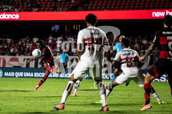 2875492 Pedro (Flamengo) e Marcos Antônio (São Paulo) durante a partida entre São Paulo e Flamengo, válida pela 1ª rodada do Brasileirão 2026, realizada na noite desta quarta-feira (28) no MorumBIS em São Paulo, SP.