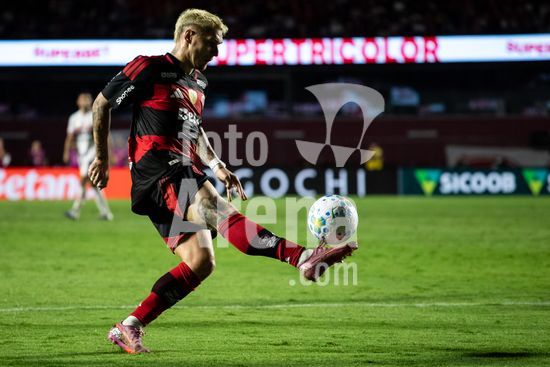 2875495 Enzo Diaz (São Paulo) e Guillermo Varela (Flamengo) durante a partida entre São Paulo e Flamengo, válida pela 1ª rodada do Brasileirão 2026, realizada na noite desta quarta-feira (28) no MorumBIS em São Paulo, SP.