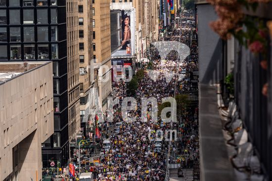 ny181025144512 Demonstrators march down 7th Avenue in Manhattan during a No Kings Day protest on Saturday, Oct. 18, 2025. (Adam Gray/The New York Times/Fotoarena)
