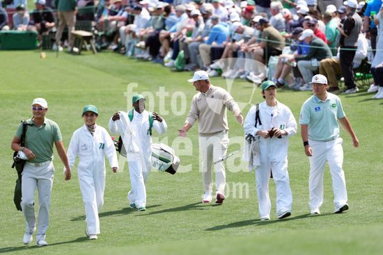 ny080426154414 Bryson DeChambeau, third from right, chats with his caddy, the actor and comedian Kevin Hart, third from left, during the Par 3 Contest at the Masters 2026 golf tournament in Augusta, Ga., Wednesday, April 8, 2026. (Doug Mills/The New York Times/Fotoarena)