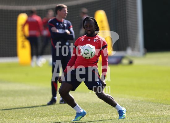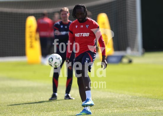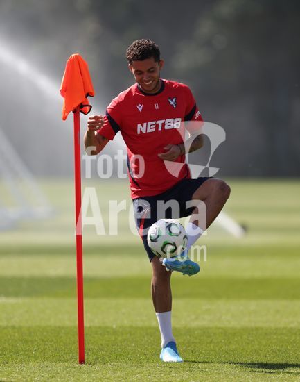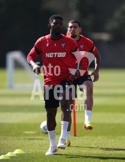 2920869 LONDRES, INGLATERRA, 8 DE ABRIL: Evann Guessand, do Crystal Palace, durante o treino da equipe no MD-1, antes da partida da Liga Conferencia da UEFA entre Crystal Palace FC e ACF Fiorentina, no Centro de Treinamento do Crystal Palace, em Londres, Inglaterra, em 8 de abril. (Daniel Weir/SPP)