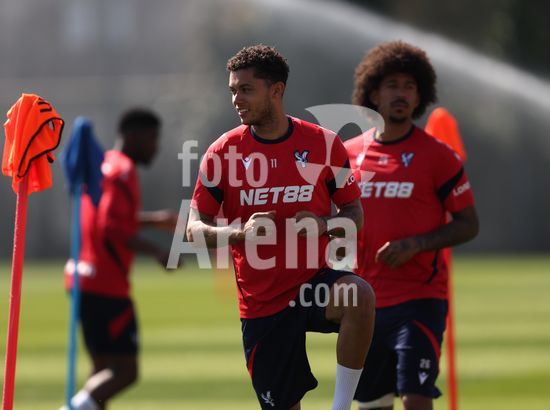 2920849 LONDRES, INGLATERRA, 8 DE ABRIL: Brennan Johnson, do Crystal Palace, durante o treino da equipe no MD-1, antes da partida da Liga Conferencia da UEFA entre Crystal Palace FC e ACF Fiorentina, no Centro de Treinamento do Crystal Palace, em Londres, Inglaterra, em 8 de abril. (Daniel Weir/SPP)