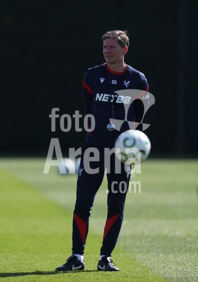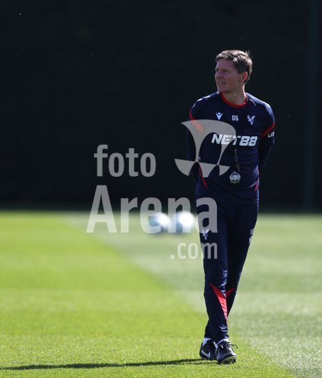 2920868 LONDRES, INGLATERRA, 8 DE ABRIL: Oliver Glasner, treinador do Crystal Palace, durante o treino da equipe no MD-1, antes da partida da Liga Conferencia da UEFA entre Crystal Palace FC e ACF Fiorentina, no Centro de Treinamento do Crystal Palace, em Londres, Inglaterra, em 8 de abril. (Daniel Weir/SPP)