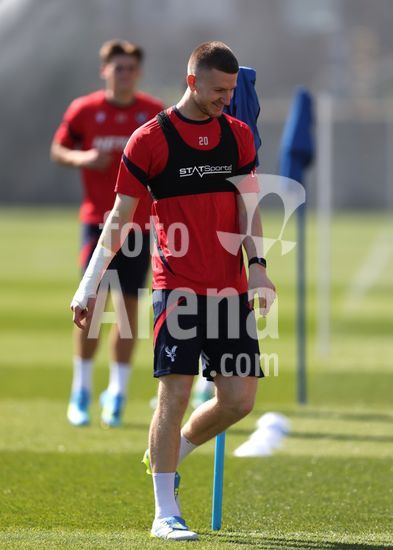 2920873 LONDRES, INGLATERRA, 8 DE ABRIL: Justin Devenny, do Crystal Palace, durante o treino da equipe no MD-1, antes da partida da Liga Conferencia da UEFA entre Crystal Palace FC e ACF Fiorentina, no Centro de Treinamento do Crystal Palace, em Londres, Inglaterra, em 8 de abril. (Daniel Weir/SPP)