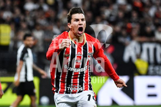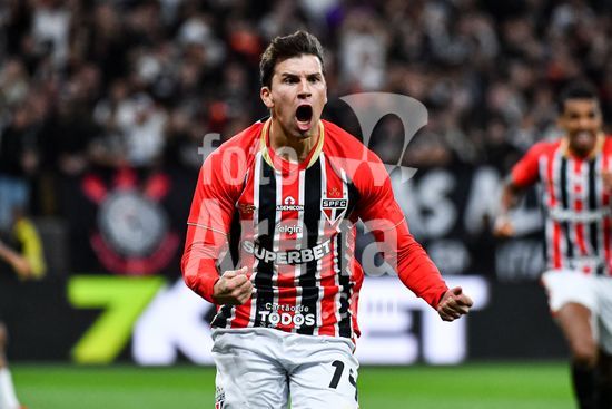 2845813 Tapia do São Paulo comemora o gol, durante partida entre Corinthians x São Paulo FC, válida pela trigésima quarta rodada do Campeonato Brasileiro de Futebol 2025, nesta quinta feira (20), na Neo Química Arena, SP.