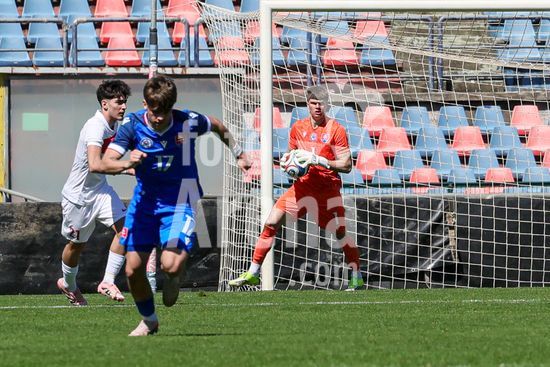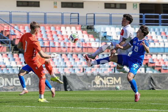 2912320 Sebastian Zajac (1 Eslovaquia) durante o jogo da Fase de Elite do Campeonato Europeu Sub-19 da UEFA de 2026 entre Turquia e Eslovaquia no estadio San Vito-Marulla, Italia. (FRANCESCO FARINA / SPP)