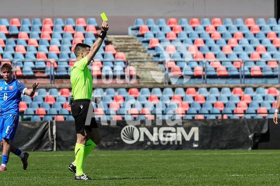 2912304 o arbitro durante a partida da fase de elite do Campeonato Europeu Sub-19 da UEFA de 2026, entre Turquia e Eslovaquia, no estadio San Vito-Marulla, Italia. (FRANCESCO FARINA / SPP)
