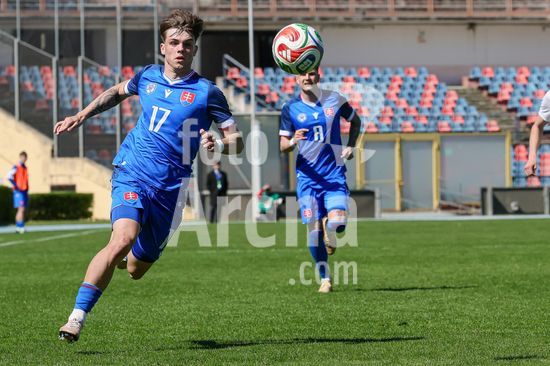 2912302 Patrik Baleja (17 anos, Eslovaquia) durante o jogo da Fase de Elite do Campeonato Europeu Sub-19 da UEFA de 2026 entre Turquia e Eslovaquia, no estadio San Vito-Marulla, Italia. (FRANCESCO FARINA / SPP)