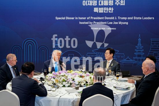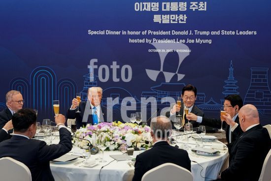 ny291025094013 President Donald Trump attends a dinner hosted by President Lee Jae Myung of South Korea, during the Asia-Pacific Economic Cooperation forum in Gyeongju, South Korea on Wednesday, Oct. 29, 2025. Trump dined with other world leaders in Gyeongju, on Wednesday, as part of the last leg of a six-day Asia trip that included stops in Malaysia and Japan. (Haiyun Jiang/The New York Times/Fotoarena)