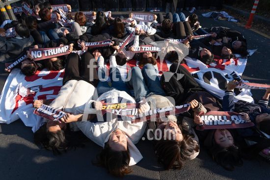 ny291025094212 Protesters against President Donald Trump lay on the street as Trump and Republic of Korea President Lee Jae-myung meet at the Asia-Pacific Economic Cooperation forum, at the Gyeongju Arts Center in Gyeongju, South Korea, Wednesday, Oct. 29, 2025. (Chang W. Lee/The New York Times/Fotoarena)
