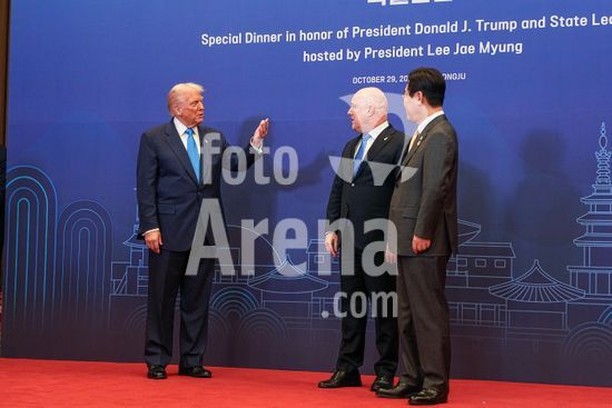ny291025073915 President Donald Trump attends a dinner hosted by President Lee Jae Myung of South Korea, during the Asia-Pacific Economic Cooperation forum, at the Gyeongju Arts Center in Gyeongju, South Korea on Wednesday, Oct. 29, 2025. Trump dined with other world leaders in Gyeongju, on Wednesday, as part of the last leg of a six-day Asia trip that included stops in Malaysia and Japan. (Haiyun Jiang/The New York Times/Fotoarena)