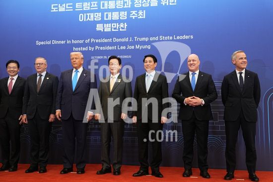 ny291025095713 Heads of state stand for a family photo at the Asia-Pacific Economic Cooperation forum in Gyeongju, South Korea on Wednesday, Oct. 29, 2025. From left: Prime Minister Lawrence Wong of Singapore, Prime Minister Anthony Albanese of Australia, President Donald Trump of the United States, President Lee Jae Myung of South Korea, President Luong Cuong of Vietnam, Prime Minister Christopher Luxon of New Zealand and Prime Minister Mark Carney of Canada. (Haiyun Jiang/The New York Times/Fotoarena)