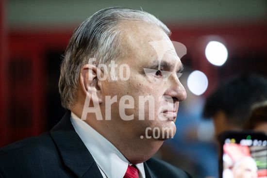 2869033 O conselho deliberativo pelo impeachment de Julio Casares, presidente do São Paulo Futebol Clube, acontece na noite desta sexta-feira (16) no MorumBIS, em São Paulo, SP. As torcidas organizadas do clube convocaram um protesto nos arredores do estádio pelos escândalos nos bastidores e o desempenho recente da equipe. Na foto, Flávio Marques, da oposição de Casares.