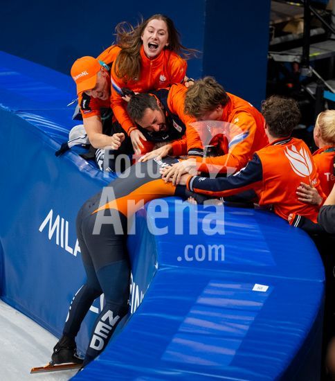 ny140226135711 Jordan Stolz, of the United States, celebrates after winning gold at the men's speed skating 500 meter final in the Milano-Cortina 2026 Olympic Games in Milan, Italy, Feb. 14, 2026. (Vincent Alban/The New York Times/Fotoarena)