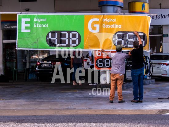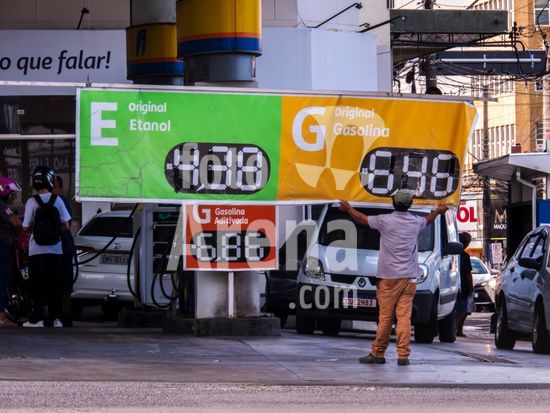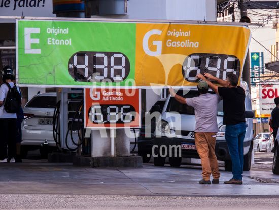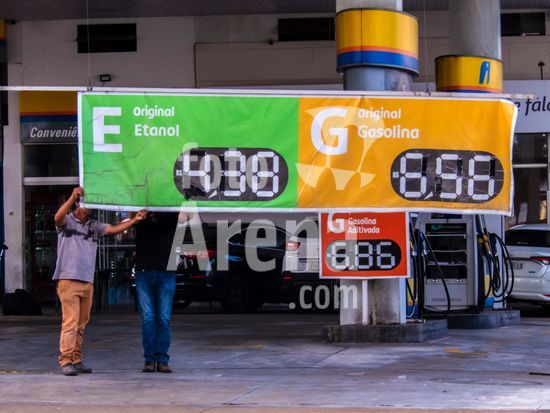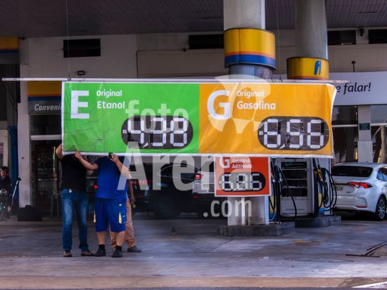 Funcionários realizam a troca de preços em uma faixa de combustíveis como gasolina e etanol em posto localizado no centro de Marília (SP). Em um cenário de incertezas econômicas no mundo, postos no centro de Marília, exibem preços que refletem o mercado após semanas de alta do petróleo. Enquanto a gasolina comum é comercializada a R$ 6,46 e o etanol R$ 4,38, motoristas da cidade enfrentam uma variação de até 28% entre diferentes estabelecimentos, segundo levantamentos recentes do Procon municipal. A nível nacional, o setor de transportes foi o principal vilão do IPCA de março, com a gasolina exercendo a maior pressão individual sobre a inflação oficial do país.
