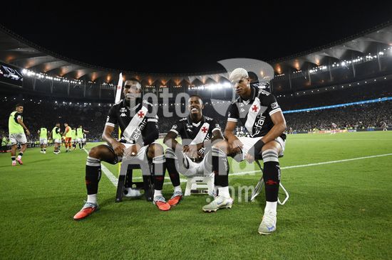 2858153 Rayan, do Vasco, comemora com os companheiros apos marcar o primeiro gol da equipe durante a partida da Copa do Brasil 2025 entre Vasco da Gama e Fluminense, no Estadio do Maracana, no Rio de Janeiro, Brasil. (Andre Ricardo/Sports Press Photo / SPP)