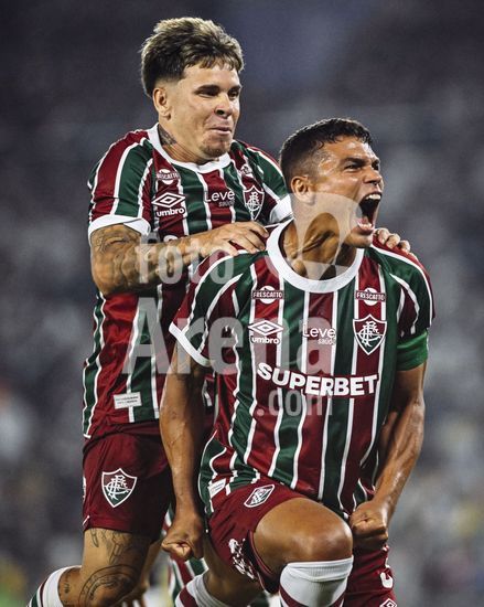 2858150 Thiago Silva (R) e Yeferson Soteldo (L) do Fluminense comemoram apos Kevin Serna do Fluminense (nao na foto) marcar o primeiro gol do time durante a partida da Copa do Brasil 2025 entre Vasco da Gama e Fluminense no Estadio do Maracana, no Rio de Janeiro, Brasil. (Andre Ricardo/Sports Press Photo / SPP)