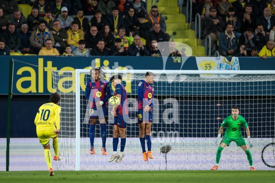 2861844 Daniel Parejo cobra uma falta durante Villareal CF x FC Barcelona realizada no Estadio de la Ceramica em CIDADE, UF.