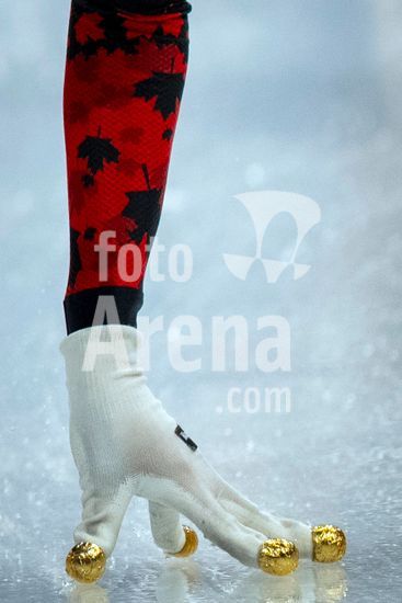 ny100226160011 The hand of William Dandjinou of Canada touches the ice as he rounds a turn during the short track mixed team relay speed skating event at the 2026 Winter Games in Milan, Italy, on Tuesday, Feb. 10, 2026. Team Italy took the gold. (Vincent Alban/The New York Times/Fotoarena)