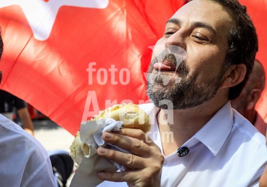 2922490 O Ministro-Chefe da Secretaria-Geral da Presidência da República, Guilherme Boulos participou de um ato contra o fim da escala 6x1 na manhã deste sábado (11), no famoso calçadão de Osasco na Grande São Paulo. A proposta é reduzir a jornada de trabalho sem diminuir o salário do trabalhador. Na foto, o ministro Guilherme Boulos, come o tradicional cachorro quente, no Calçadão de Osasco.