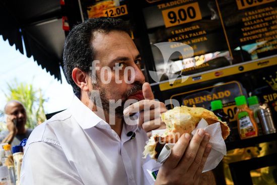 2922488 O Ministro-Chefe da Secretaria-Geral da Presidência da República, Guilherme Boulos participou de um ato contra o fim da escala 6x1 na manhã deste sábado (11), no famoso calçadão de Osasco na Grande São Paulo. A proposta é reduzir a jornada de trabalho sem diminuir o salário do trabalhador. Na foto, o ministro Guilherme Boulos, come o tradicional cachorro quente, no Calçadão de Osasco.
