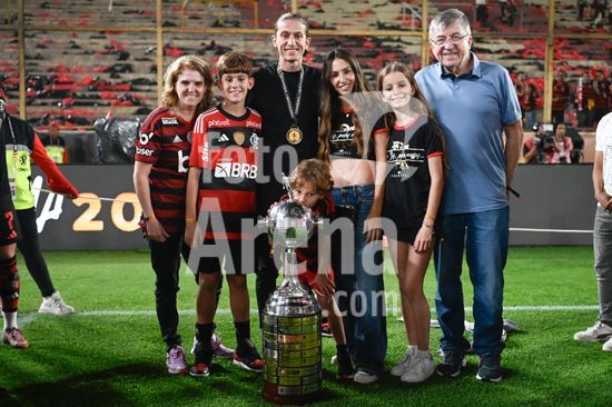 2850585 Técnico Filipe Luis posa com sua família durante Palmeiras x Flamengo partida válida para a Final da CONMEBOL Libertadores 2025, realizado no estádio Monumental, localizado na cidade de Lima, Peru, neste sábado (29).