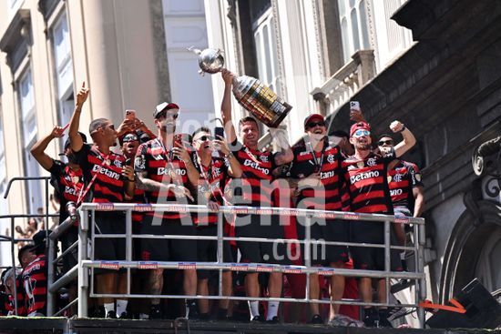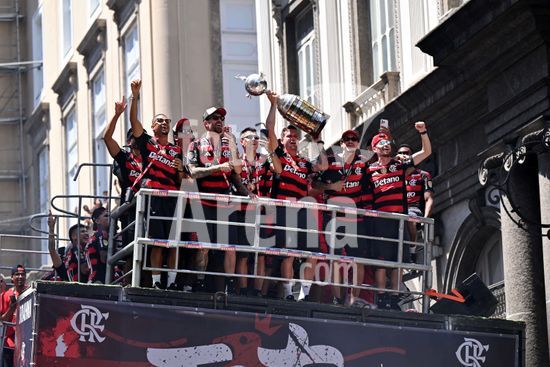 2850491 Comemoração do Flamengo na chegada no Rio de Janeir após a conquista da copa Libertadores, no Centro da cidade,no Rio de Janeiro, RJ.