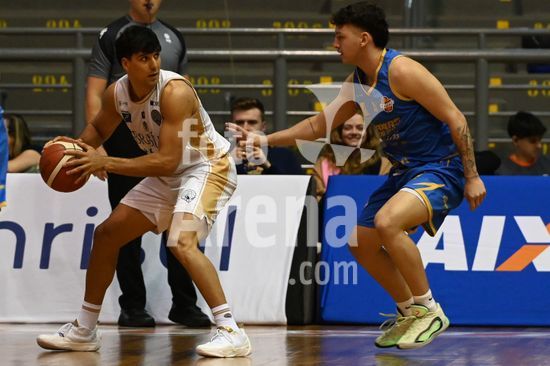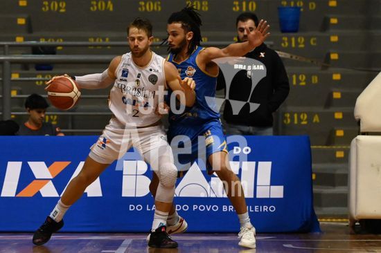 2836488 Imagens da partida de basquete entre o Caxias do Sul Basquete e o Basquete Brasília, disputada no Ginásio do SESI, válida pela quinta rodada do Caxias do Sul Basquete no NBB 25/26. Crescenci do Brasília e e Pedro do Caxias. Caxias do Sul, RS (05).