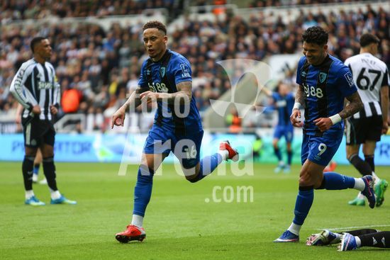 2927642 NEWCASTLE UPON TYNE, INGLATERRA, 18 DE ABRIL: Marcus Tavernier (E) e Rayan (D), do AFC Bournemouth, comemoram durante a partida da Premier League 2025-26 entre Newcastle United e Bournemouth, no St James Park, em 18 de abril de 2026, em Newcastle Upon Tyne, Inglaterra. (Foto de Zach Forster/Sports Press Photo) (Zach Forster/Sports Press Photo / SPP)