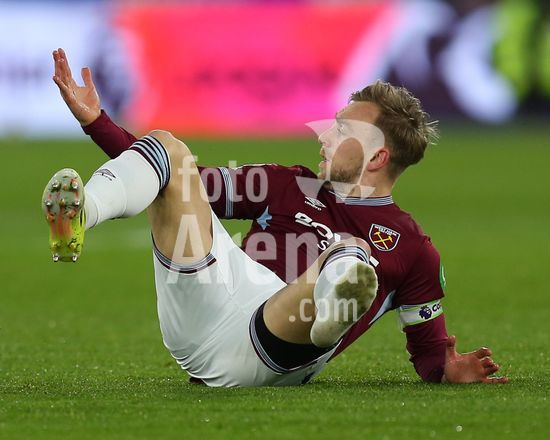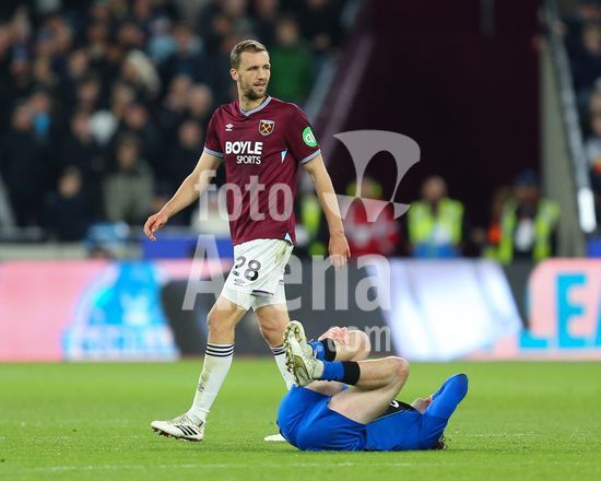 2892322 Londres, Inglaterra, 21 de fevereiro de 2026: Tomas Soucek (28 West Ham United) recebe um cartao amarelo por uma falta em Alex Scott (8 AFC Bournemouth) durante o jogo da Premier League entre West Ham United e AFC Bournemouth no Estadio de Londres, em Londres, Inglaterra. (Foto de Jay Patel/Sports Press Photo/SPP) (Jay Patel/Sports Press Photo/SPP)